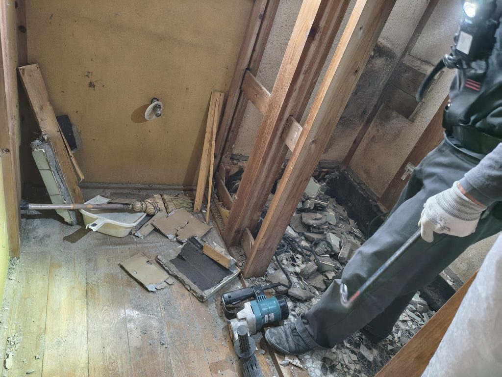 また、今回新たに設ける床点検口の位置も同様に撤去します。
